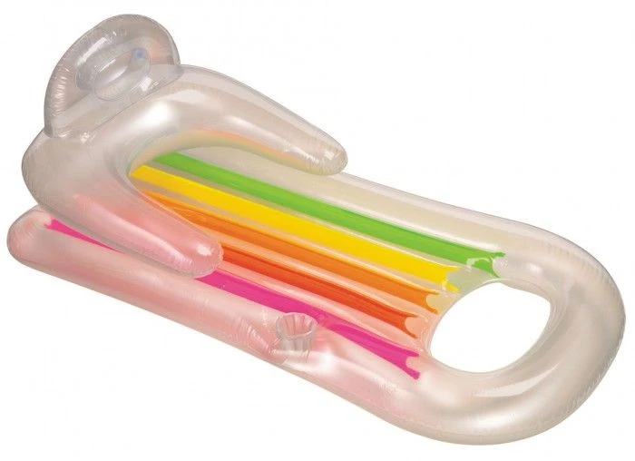 Relax floating gently in the water with Intex Pool Inflatable Mattress King Kool Lounger – Pearlescent Silver 63″ x 33.5″ (1.60m x 85cm). With backrest and armrests for maximum comfort.