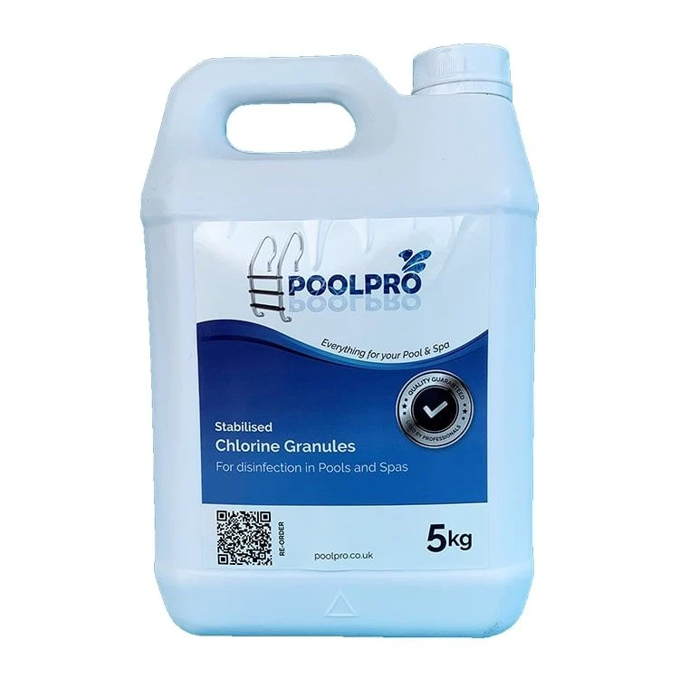 Chlorine Granules (5 kg) with built in stabiliser, a superior quality sanitiser for pool or hot tub water.
