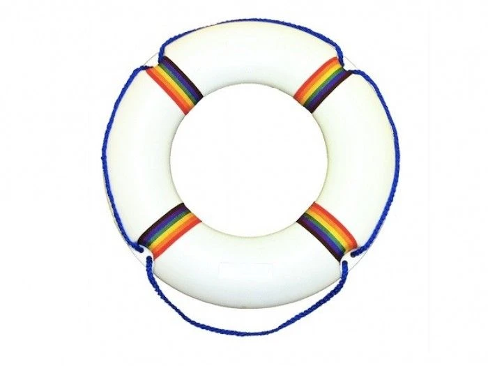 Floating Safety Ring Pool Buoy, made from durable soft plastic, with colourful design and safety nylon rope attached for an easier grip. Can be mounted on a wall or post. Size 21 inches (53cm) diameter.